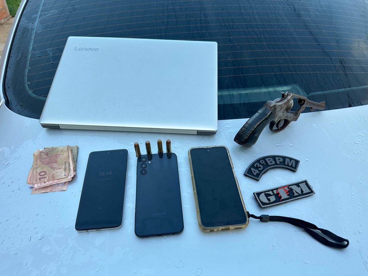 Ainda na quarta-feira, a polícia prendeu em flagrante um suspeito de receptação de objetos roubados, incluindo capacetes, cartões de crédito e celulares levados durante o arrombamento de uma loja de acessórios para motociclistas no bairro João de Deus.
